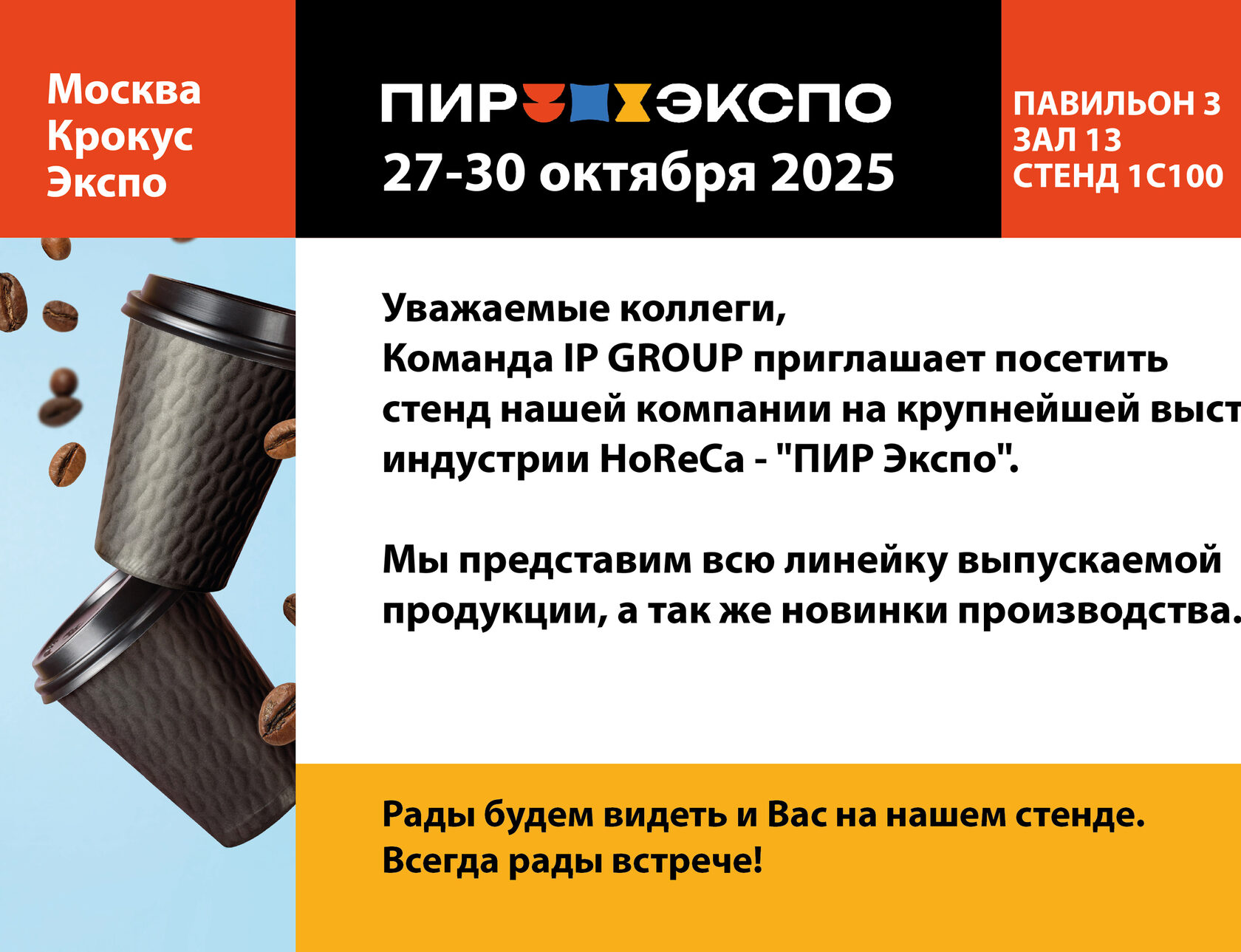 Уважаемые коллеги, Команда IP GROUP приглашает посетить стенд нашей компании на крупнейшей выставке индустрии HoReCa- "ПИР Экспо".
